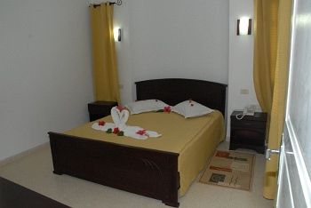 Chambre avec un lit double, une garde-robe, deux tables de nuit, une commode et un coffre-fort.